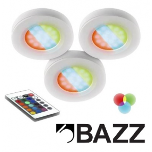 Paquet de 3 rondelles au DEL RGB (Rouge, Vert, Bleu) pour sous-comptoirs, étagères, bibliothèques, esclaiers, etc.