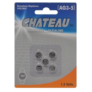 Pile bouton 392 (LR41, AG-3) de 1.5 volts alcaline de marque Chateau. Ensemble de 5 piles.
