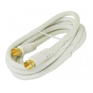 Câble coaxial blanc RG-6 avec fiches ''F'' plaqué or - 6 pieds.