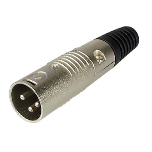 Prise XLR mâle à 3 contacts. Diamètre du caoutchouc arrière pour l'entrée du fil : 5 mm. Finition en métal doré..