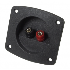 Bornier de connection simple pour boîtes de son avec borniers bananes en plastique (+/-).