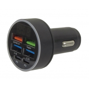 Chargeur de voiture rapide à 6 ports avec PD+QC3.0 + Super+3.1 A, adaptateur allume-cigare USB avec moniteur LED, chargeur universel de voiture USB 12 V/24 V.